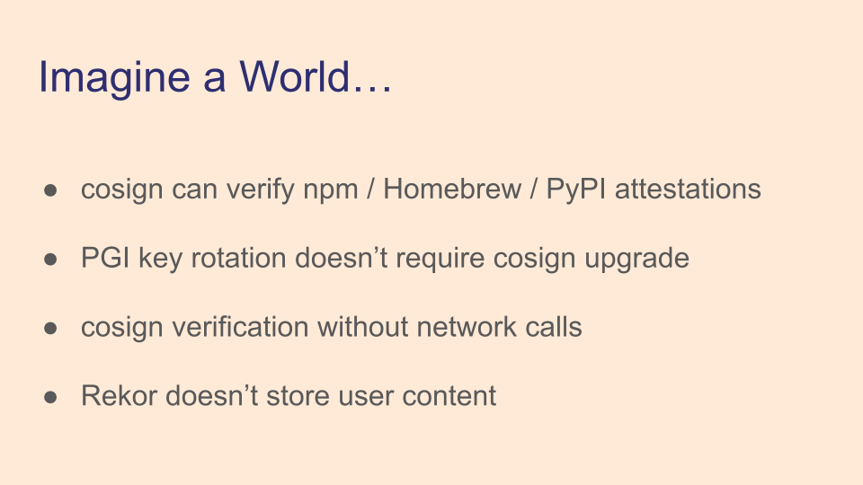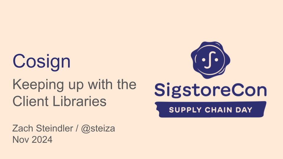 This talk was about the work we're doing to keep Sigstore cosign interoperable with client libraries and things like npm provenance, Homebrew attestations, and PyPI attestations. It was given at SigstoreCon 2024.